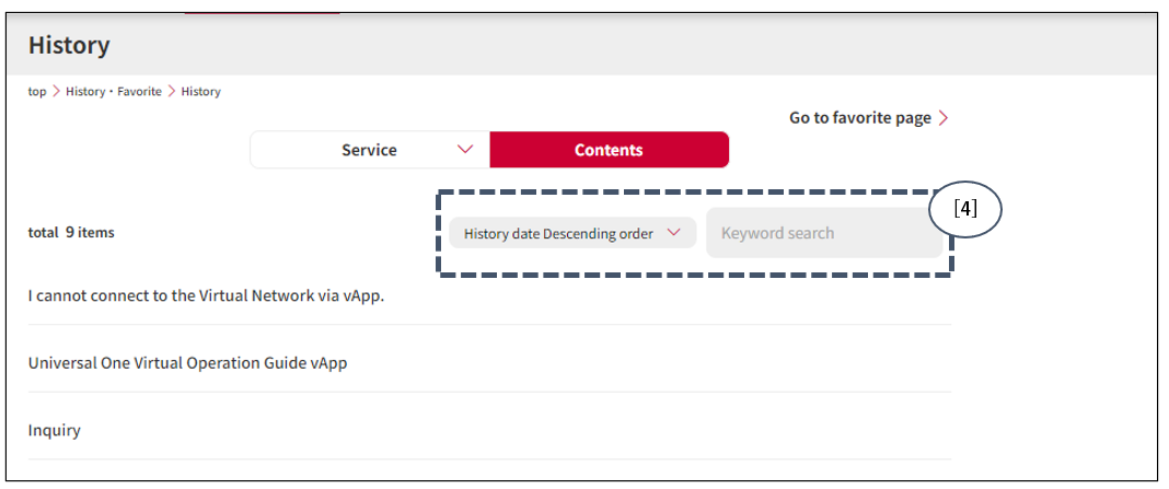 - Click the "History/Favorites" button from the global navigation at the top of the site to transition to the browsing history/favorites page.